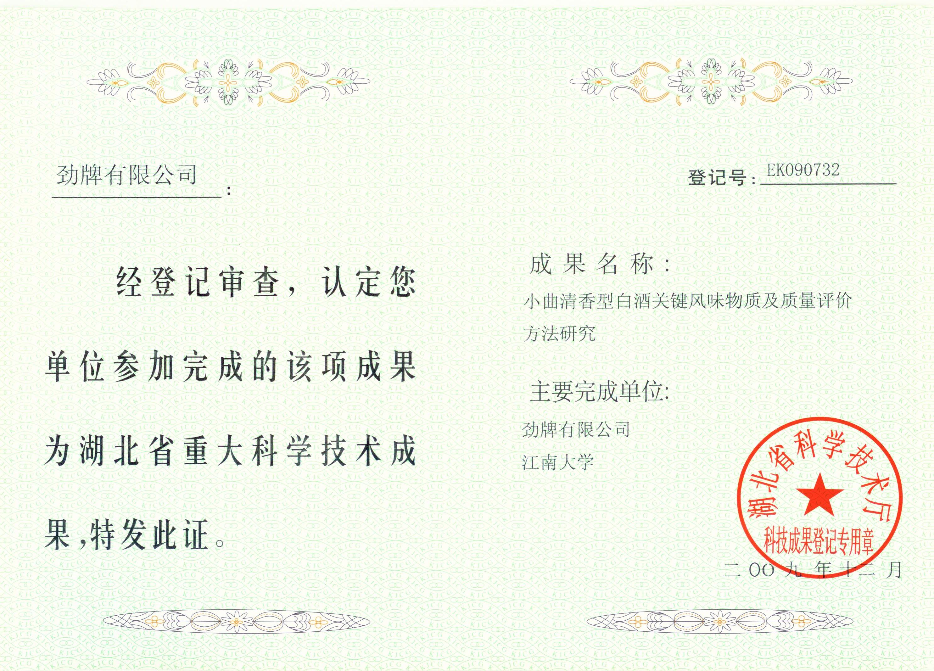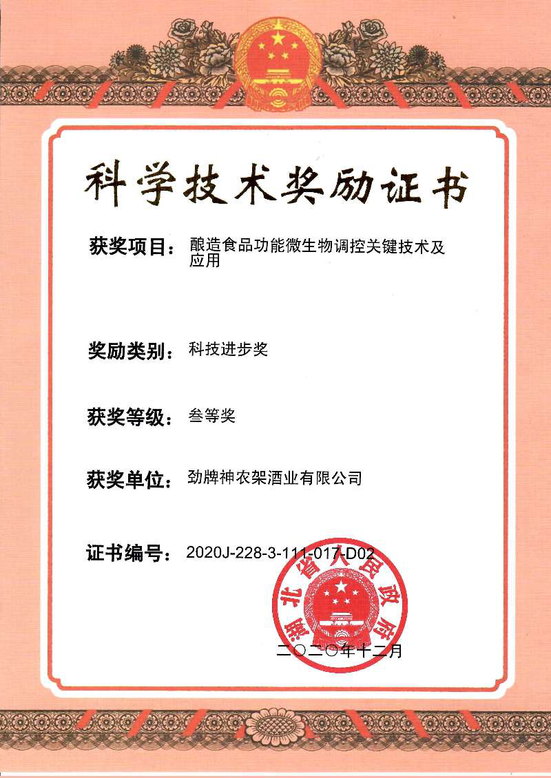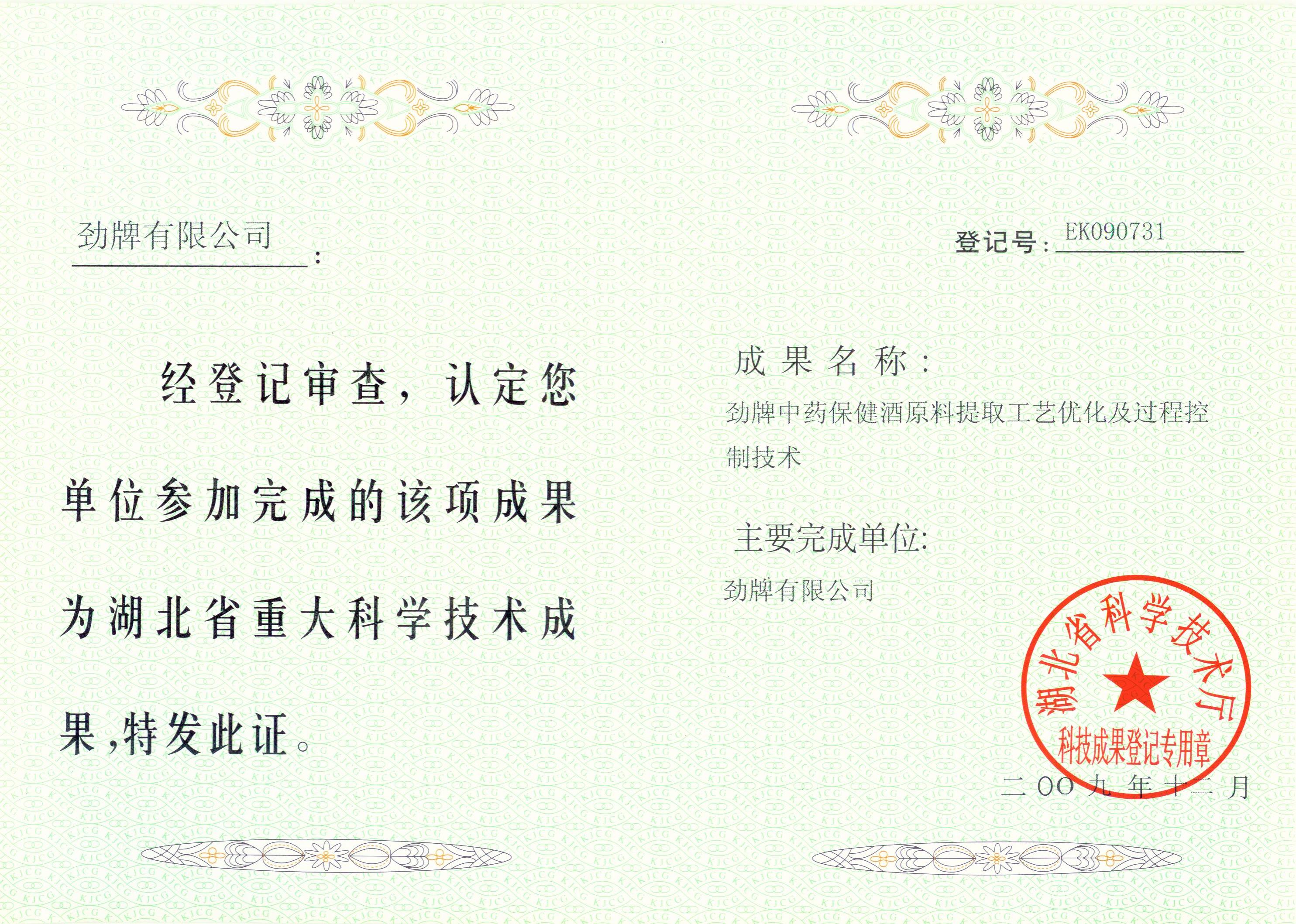 近年來,公司圍繞保健酒、草本白酒和中草藥新產(chǎn)品研發(fā)、產(chǎn)品改進(jìn)和基礎(chǔ)應(yīng)用技術(shù),在中藥數(shù)字化提取、小曲酒釀造新工藝、中藥指紋圖譜等核心技術(shù)方面擁有自主知識產(chǎn)權(quán),通過行業(yè)協(xié)會(huì)等鑒定機(jī)構(gòu)技術(shù)評估22項(xiàng),其中15項(xiàng)成果鑒定為“國際領(lǐng)先”水平,7項(xiàng)成果鑒定為“國際先進(jìn)”水平。