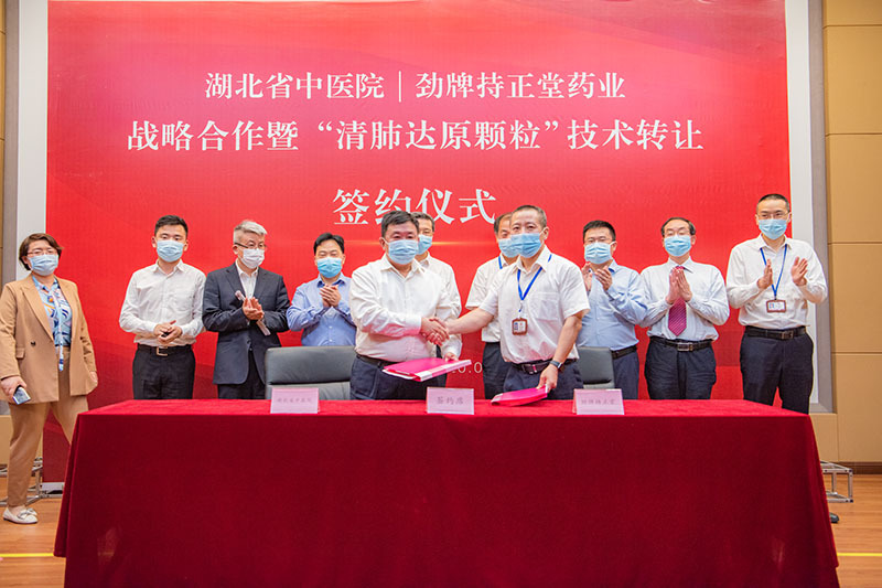 5月11日,湖北省中醫(yī)院與勁牌持正堂藥業(yè)戰(zhàn)略合作暨“清肺達(dá)原顆?!奔夹g(shù)轉(zhuǎn)讓簽約儀式,在勁牌持正堂藥業(yè)隆重舉行。湖北省中醫(yī)院黨委書記巴元明、院長何紹斌,黃石市衛(wèi)健委主任劉安定,勁牌公司董事長、總裁吳少勛,勁牌持正堂藥業(yè)總經(jīng)理李清安出席儀式。 來訪領(lǐng)導(dǎo)先后參觀了勁牌研究院、中藥提取車間,了解了公司數(shù)字提取工藝,和疫情期間中藥產(chǎn)品的生產(chǎn)捐贈情況。隨后在持正堂藥業(yè)展開座談會議。 會上,雙方對各自發(fā)展歷程、運(yùn)營狀況、技術(shù)強(qiáng)項(xiàng)及面臨困難進(jìn)行了深入溝通。 巴元明書記以“重大疫情”、“重大擔(dān)當(dāng)”、“重大機(jī)遇”、“重大合作”四個(gè)重大高度概括此次合作及其背景。他表示,在這次傳播速度最快、感染率最廣、防控難度最大的歷史性疫情面前,雙方都展現(xiàn)出了高度的責(zé)任與擔(dān)當(dāng);同時(shí),中醫(yī)藥在本次疫情防控中彰顯的突出效果為中醫(yī)藥產(chǎn)業(yè)的發(fā)展創(chuàng)造了天時(shí)、地利、人和的重要機(jī)遇,期望以此次“清肺達(dá)原顆?!?/strong>臨床批件申報(bào)為起點(diǎn),與勁牌一起傳承精華,守正創(chuàng)新,攜手打造湖北中醫(yī)藥強(qiáng)省。 何紹斌院長表示,此次與勁牌的戰(zhàn)略合作,雙方目標(biāo)一致,互補(bǔ)性強(qiáng),可充分發(fā)揮湖北省中醫(yī)院的科研及臨床優(yōu)勢和勁牌的市場優(yōu)勢。此次合作基礎(chǔ)良好,前景光明。期望雙方加強(qiáng)溝通和交流,共同推進(jìn)戰(zhàn)略合作的深入開展。 會上,湖北省中醫(yī)院院長何紹斌與勁牌有限公司董事長吳少勛,及勁牌持正堂藥業(yè)總經(jīng)理李清安,分別簽訂了“湖北省中醫(yī)院與勁牌持正堂藥業(yè)有限公司共同振興發(fā)展湖北省中醫(yī)藥事業(yè)的戰(zhàn)略合作協(xié)議”和“‘清肺達(dá)原顆?!夹g(shù)轉(zhuǎn)讓與新藥臨床前研究合作協(xié)議”。 據(jù)了解,湖北省中藥資源豐富,中藥工業(yè)存在較大提升空間,湖北省中醫(yī)院作為省內(nèi)龍頭中醫(yī)院,與勁牌達(dá)成戰(zhàn)略合作,包括“積極合作開展茯苓等湖北省優(yōu)勢中藥材的種植、基礎(chǔ)研究及產(chǎn)業(yè)化推廣應(yīng)用”以及“共同推進(jìn)中藥配方顆粒與傳統(tǒng)飲片臨床等效性評價(jià)等工作的開展”,以推動湖北省中醫(yī)藥從種植、工業(yè)生產(chǎn)到臨床使用全產(chǎn)業(yè)鏈的發(fā)展,為將湖北打造為中醫(yī)藥強(qiáng)省助力。 清肺達(dá)原顆粒簡介:該方是在國醫(yī)大師梅國強(qiáng)教授的指導(dǎo)下,由巴元明等專家研制的組方(即湖北省中醫(yī)院“肺炎1號”),是唯一一個(gè)用于治療新型冠狀病毒肺炎的湖北省地方組方。已全面應(yīng)用于全省新型冠狀病毒感染肺炎疑似、臨床診斷病例及確診病例治療中。從當(dāng)前的臨床統(tǒng)計(jì)結(jié)果來看,“清肺達(dá)原顆?!迸R床治愈率達(dá)到了95.34%,療效顯著。除治療新型冠狀病毒肺炎之外,該方還可適于由病毒引起的甲流、乙流、禽流感等流行性感冒,具有較大的潛在開發(fā)價(jià)值。