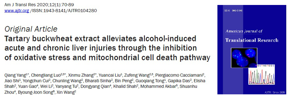 近日,勁牌研究院和美國哈佛大學(xué)醫(yī)學(xué)院布里根婦女醫(yī)院(Brigham and Women’s Hospital/Harvard Medical School)的一項聯(lián)合研究報道了添加苦蕎麥提取物的毛鋪苦蕎酒,在體內(nèi)動物模型和體外肝細(xì)胞模型對酒精引起的急性和慢性肝損傷有保護作用。研究論文正式發(fā)表于專注醫(yī)學(xué)轉(zhuǎn)化研究方向的國際期刊——《美國轉(zhuǎn)化研究雜志》(《American Journal of Translational Research》,2018年影響因子為3.266)。該研究成果,為毛鋪苦蕎酒“走出去,引進來”技術(shù)合作項目《苦蕎酒對大鼠酒精性肝損傷輔助保護作用的研究》畫上了一個完美的句號,也為毛鋪苦蕎酒的國際化傳播建立了一個良好的開始。