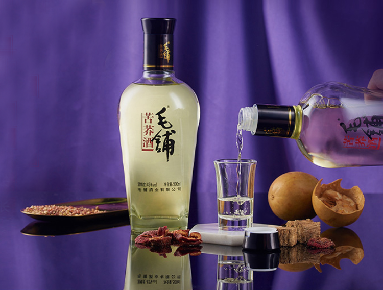 毛鋪苦蕎酒,采用傳統(tǒng)釀造工藝與中藥提取技術(shù)相結(jié)合,使用清香型、濃香型和醬香型白酒,且融入具有藥食兩用的苦蕎麥、葛根、枸杞等中藥材。
